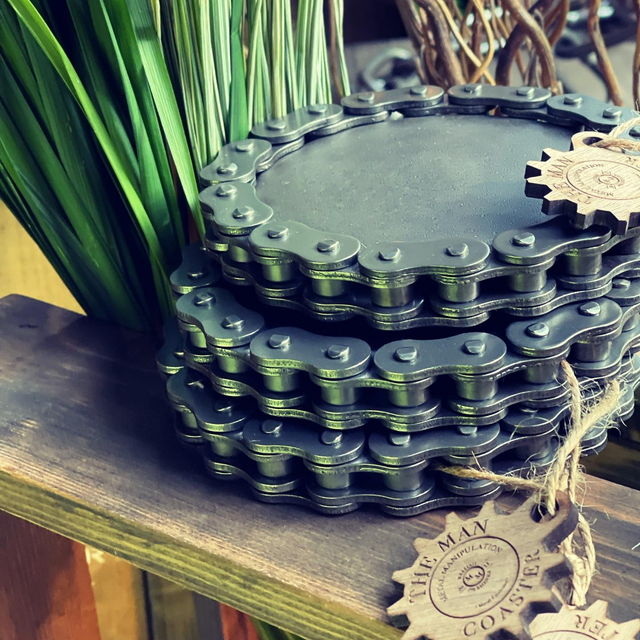 Metal Manipulations Man Coaster. This item makes a great quirky gift especially for someone that has everything. This heavy duty coaster is made from chunky bike chain and welded into shape to make a truly unique coaster.