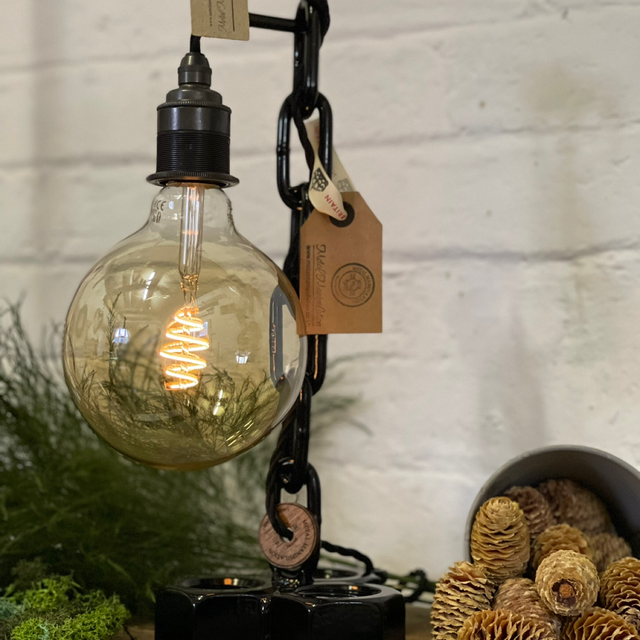 This is the medium size nut lamp incorporating 42mm industrial nuts to form the base. This is finished in a Jet Black powder coating. For more information please visit our website www.metalmanipulation.co.uk